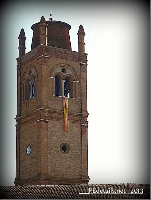 Sempre ripresa dalla stessa postazione, una bella immagine del campanile della Basilica di San Giorgio, detta anche “Basilica fuori le Mura“ dopo che la sede vescovile venne spostata nel 1135, nell'attuale Cattedrale di Ferrara, esattamente nel centro della città.