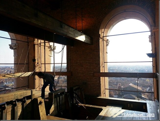 Ed ecco i campanari ferraresi all’opera mentre suonano le loro antiche melodie spingendo letteralmente le campane a tempo. Uno spettacolo veramente unico…peccato che pochi lo possano vedere. Sarebbe bello un giorno aprire a tutti questo luogo storico e mostrare l’arte antica di suonare nei campanili. Sarebbe un bene sia per la cultura…sia per il turismo ferrarese!
